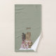 Three Vintage Gnomes Hand Towel. This adorable design has three cute gnomes resting after a long day picking up packages in their wagon. Design is vintage looking pinks, blues and golds. Easily edit the greeting with name.
