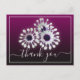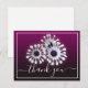 Stunning close-up photograph of three white osteospermum daisies against a purple gradient background. The flowers cover the front of this blank floral postcard which can be used as a thank you card, a birthday card, or any other card of your choice. Customise it with your text and/or pictures to make it one-of-a-kind!