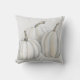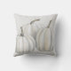 Three white pumpkins on a light grey background. Cute fall decoration.