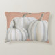 Three white pumpkins on a light brown background. Cute fall decoration.