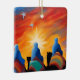 Celebrate the wonder of the Nativity with this striking ceramic ornament featuring an abstract depiction of the Three Wise Men journeying beneath a radiant sky. Silhouetted against a vivid sunset of crimson, gold, and violet, the Magi ride their camels toward the guiding Bethlehem star that marks the birth of Jesus Christ. This modern interpretation blends tradition with bold color and spiritual symbolism, making it a meaningful addition to any Christmas tree or holiday gift. Perfect for faith-based celebrations, religious keepsakes, or anyone who cherishes the story of the first Christmas.