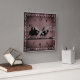 A silhouette image of the Three Wise Men riding camels following the Star of Bethlehem on a faded chocolate burlap background with a white filigree border. Image credits: Pixabay.com image #1299283, image# 488204