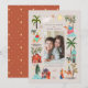A cute beautiful Peace on Earth religious Christmas hand painted illustration featuring the three Wise Men in a landscape with the star of Bethlehem and nativity scene in little drawings around the photo frame. This illustration is in the trendy earthy colour theme with terracotta, rust, brown and green. Original artwork by Caroline Bonne Müller.
