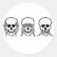Three wise skulls, see, hear, speak no evil classic round sticker