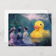 A funny historical style painting of three women sitting by the lake having a picnic with a giant duck in the park AI generated art