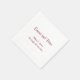 The "Through All Eternity" Red Text Names and Date wedding reception napkins exude elegance and personalisation, with the couple's names beautifully scripted in burgundy, their wedding date displayed in a classic serif font, and a chosen romantic phrase also adorned in burgundy.