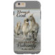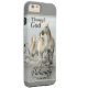 Inspirational quote iPhone case depicts beautiful white horses galloping through water and features Bible Verse Psalm 108:13, Through God we shall do valiantly, for He shall tread down our enemies.