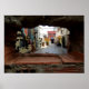 The destruction of progress. Peeking through the wall of a construction project just begun, we see the remnants of a little alley which until recently contained half a dozen charming cafes serving lunch every day. Today one cafe remains, across from an artistically created graffiti wall. Soon there will be a huge new building, modern and maybe even beautiful, but we will miss our pleasant little cafes and the friendly if harassed wait staff.