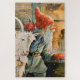 Jenny Nystrom created the image of the tomten or mischievous spirits and gnomes who protected the Swedish farmstead and buildings. They also represented Father Christmas who delivered children’s presents on Christmas eve.This image depicts a gnome gazine through a Christmas window while leading a goat and sled with baby.