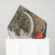 Jenny Nystrom created the image of the tomten or mischievous spirits and gnomes who protected the Swedish farmstead and buildings. They also represented Father Christmas who delivered children’s presents on Christmas eve.This image depicts a gnome gazine through a Christmas window while leading a goat and sled with baby.