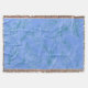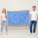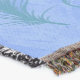 Beautiful throw blanket with whispers of green feathers on blue background.