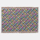 3D buttons, in rectangles and circles, are shown in multiple pastel colours. Design replicated multiple times on a diagonal, across the blanket.