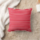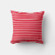 This throw pillow is shown in a stylish red and white stripes print.