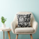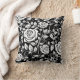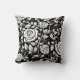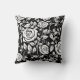 This throw pillow is shown in a lovely black and white flower print design.