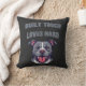 Bold pit bull artwork for proud dog parents who love strong, loyal dogs. Featuring a powerful bully-breed illustration with stone-look lettering. Black on one side and light grey on the reverse, so you can change the look depending on your mood. This graphic throw pillow is perfect for pit bull fans, and anyone who knows their pup is built tough! Show off your love for big-hearted bullies with this statement piece. The matching throw blanket is available in my store.