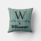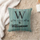 On this stylish plush pillow set are teal blue rustic wood planks with a letter and family name that you can customise it making it uniquely your own. Rustic farmhouse vibes.