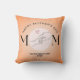 This pillow design is a heartwarming tribute for Mother’s Day, blending simplicity with emotional depth. The soft peach background sets a calming tone, while the large word "MOM" is creatively styled—featuring an illustration of a mother and baby’s hands gently holding each other in place of the "O", enclosed in a light pink circle with a tiny heart above, symbolising love and connection. Above, the phrase "Happy Mother’s Day" arcs gracefully, and below, the message "To the Best Mum Ever".