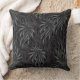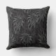 This throw pillow is shown in a lovely black and grey tones tropical palms print design.