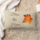 This throw pillow is shown in a beige neutral colour with a Bless This Home text print with a pretty fall leaf accent.