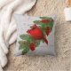 This throw accent pillow is shown in a festive holiday Christmas red cardinal bird design.