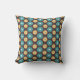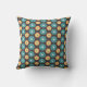 Stylish, sustainable throw pillow with a modern pattern of in teal, yellow gold and dark brown.