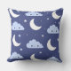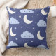 Throw Pillow Navy Kawaii Moon Stars Clouds Pattern