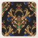 A luxurious and intricate seamless pattern featuring ornate gold filigree, deep blue and emerald green velvet accents, and sparkling ruby gemstones set against a solid black background. The design blends baroque and Victorian aesthetics, creating a sophisticated, high-end look perfect for luxury branding, upscale wallpaper, or elegant apparel.