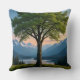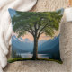 Throw Pillow Tree, Green Land, Sea, Sky & Mountain