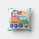 Sweet and colourful throw pillow with truck filled with hugs and kisses and hearts, for your child's bedroom.