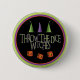 Fun purple, green, orange, yellow and black graphic design features witches hats and dice adorned with witches flying on broom sticks. Text reads "Throw The Dice Witches". Great for bunco, game night and more. Makes a great prize or gift.