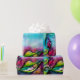 Whimsical ,colourful and vibrant watercolor painting in bright red,pink,fuchsia,yellow,blue.green ,purple colours .2009 . Illustration for an Andersen tale. A little ,tiny child who was born in a flower , who slept in a walnut shell, who rowed about on a tulip leaf ...