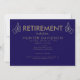 Retirement party invitation. "It's about time". Navy background gold text. Thurmbs up.