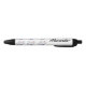 Thunderbirds customisable pen, with three views of the iconic US aerobatic squadron of nine Thunderbirds jets soaring through the air with red, white and blue trails.