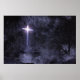 An unusual 3D Easter design created in Vue and illustrating salvation from darkness to light through the cross of Christ. In a dark forest the trees are withered and gnarled, with fog and mist circling their twisted trunks and covering the rocky ground. The woods are bounded by a tall stone wall which blocks any view of the other side. But in the wall is a cross-shaped hole, and the rising sun shines brilliantly through the gap, inviting the viewer to escape from the shadows into the sunlight.