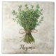 Rustic watercolor graphic design with herb, Thyme on a faux texture background. A vintage country look. ”Thyme” on bottom of tile adds to the character of this tile. Perfect for your country French or cottage farmhouse kitchen.