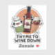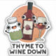 Thyme To Wine Down Funny Chill Pun features a cute bottle of thyme with his pals wine glass and bottle . Perfect pun gift for family and friends who love cute food drink puns.
