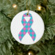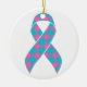 Thyroid Cancer Awareness Plaid Teal Ribbon Ceramic Tree Decoration