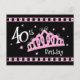 Make sure to treat your Birthday Queen like royalty with these fun 40th birthday party invitations. Featuring a pink tiara covered in jewels against a black background. Front text says 40TH BIRTHDAY. Fully customisable text on back for all your party information. Coordinated postage stamps, T-shirts, tote bags, mugs, stickers and more also available. PinkInkArt original!