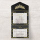 Tiara & Foil Leaf Frame Quinceanera - Pearl/Gold All In One Invitation
