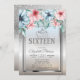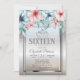 Tiara,Frame Silver Glitter Bokeh Floral Sweet 16 Invitation