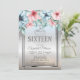 Silver glitter tiara, flowers on silver glitter bokeh ombre Sweet 16 birthday party invitation.