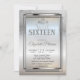 Silver glitter tiara on silver glitter bokeh ombre Sweet 16 birthday party invitation.