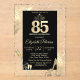 Elegant tiara, diamond, gold glitter heels, champagne bottle and glass and swirls on black background. Beautiful invitation that can be customised with your name. Select the "customise" button to change the font style, colour, and size.