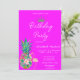 Silver glitter tiara, pineapple and pink flamingo on neon pink background birthday party invitation. Have fun at your birthday party with this elegant invitation. Invite your guests to raise a glass and join in on the fun with these festive invitations.