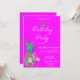 Tiara Pineapple Pink Flamingos Neon Pink Birthday Invitation