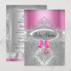 Pink Baby Shower Invitation. It's a Girl! Pretty damask design and sparkle tiara & bow. Please note: All flat images! They do not have real bows or jewels!