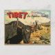 This charming vintage style travel design features an Ox on a mountain with a lovely blue sky behind and the promise that Tibet offers excitement with the words "Tibet, an adventure awaits!"