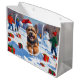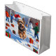 Tibetan Terrier Running in Snow with Christmas Hat Large Gift Bag