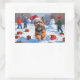 Tibetan Terrier Running in Snow with Christmas Hat Rectangular Sticker