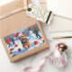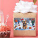 A lively Tibetan Terrier runs joyfully through the snowy winter scene, wearing a festive red Christmas hat. This charming design highlights the breed’s long flowing coat, playful personality, and affectionate nature while capturing the warmth and joy of the holiday season. A delightful winter moment full of festive cheer.